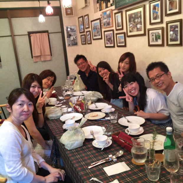 例によってコース料理のあとアラカルトで別オーダ^_^ まぁ〜よく食べるわ、食べるわ^_−☆院長側の少食組、副院長側の大食組、スィーツは別腹今回は野崎さんの誕生日もかねて、ママお手製のチーズケーキも2台別注文、ティラミスも、、、キッシーと小谷野さん大食組2人が欠席が存念でしたが、楽しく会を終えました。